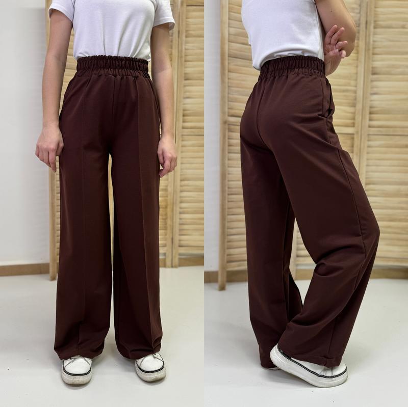 Брюки «Бостон» свободного кроя по переду декоративная лента низ на фиксаторах в поясе под резинку ткани Турецкая двунитка есть карманы Хорошее качество! рост/длин.штанов/крок/пот/поб похибка +-2см 140-146/90/62/25/44-1шт 146-152/94/65/27/45-1шт 152-158/98/68/28/46-1шт 158-164/100/71/29/48-1шт 164-170/104/75/30/49-1шт