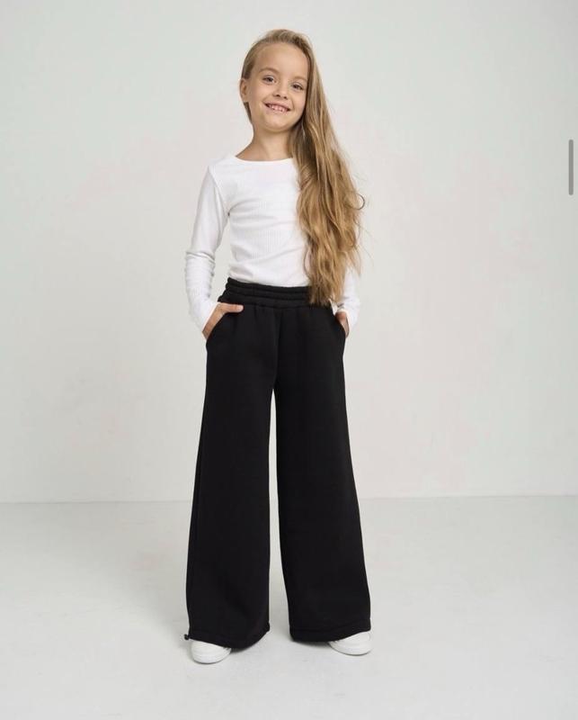 ✅Є пакунок школяра Крутезні теплющі штани палаццо для модниць ▪️тринитка фліс ▪️внизу стягуються регуляторами Модель повномірна 🔻122-довжина 75 крок 48 -5 штук 🔻128-довжина 80 крок 54 -3 шт