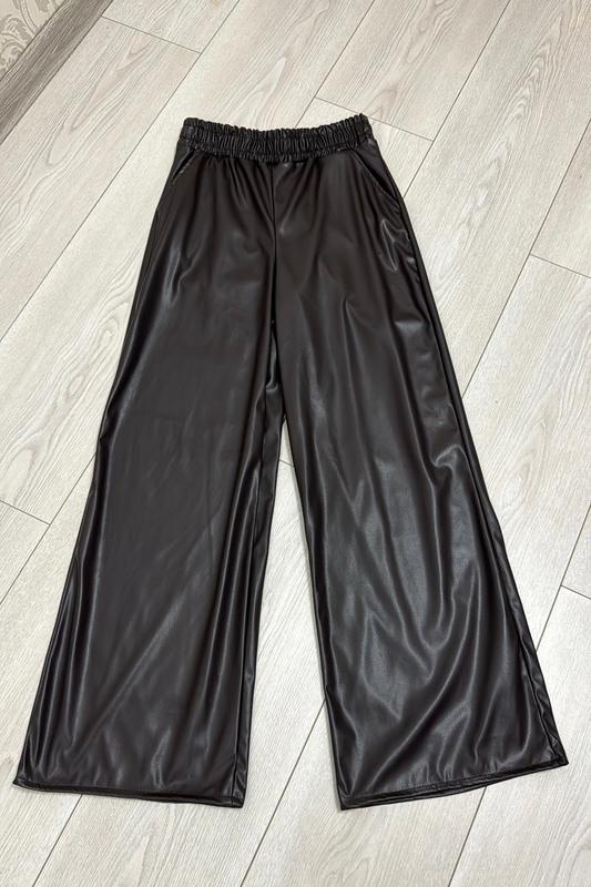 Кожаные брюки палаццо с легким флисовым утеплением цвет темный шоколад в поясе резинка есть боковые карманы. 🌹140-длина 87, крок 61,пояс 26, поб 42 🌹146-длина 93,крок 65,пояс 27, поб 43 🌹152-длина 98, крок 68,пояс 28, поб 44 🌹158-длина 101,крок 71,пояс 29, поб 46 🌹164-длина 104,крок 73,пояс 31, поб 48 кнв