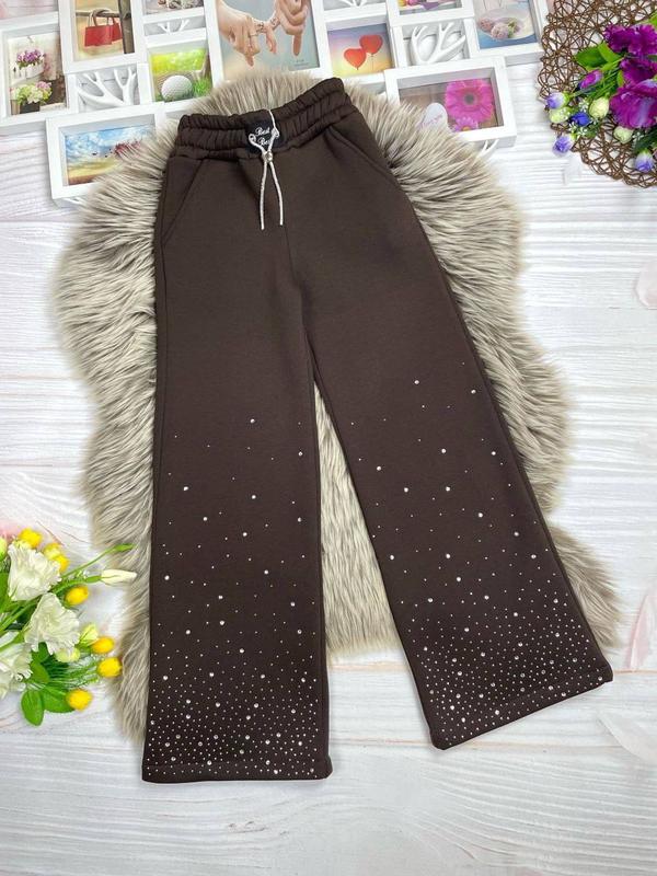 Цена 1800 грн Код 200 ВАУ НОВИНОЧКА 🥰😍💖 НАРЯДНІ ПАЛАЦЦО ТКАНИНА ДВУХНИТКА 134-164💜 В поясе на резинке Ткань турецкая двухнитка пенье Украшенные стразами💗 качественные не отпадают!👌 Есть карманы Тканина не кошлатиться КАЧЕСТВО ЧУДОВА!! РЕКОМЕНДУЮ!!! ЦВЕТ ШОКОЛАД Замеры: длин / крок /пояс 134-81/61/25 140-85/64/26 146-89/67/27 152-93/71/28 158-98/76/30 164-102/81/31 -+2 см РАЗМЕРЫ: 134 - 2 140 - 2 146 - 1 152 - 2 158 - 2 164 - 2