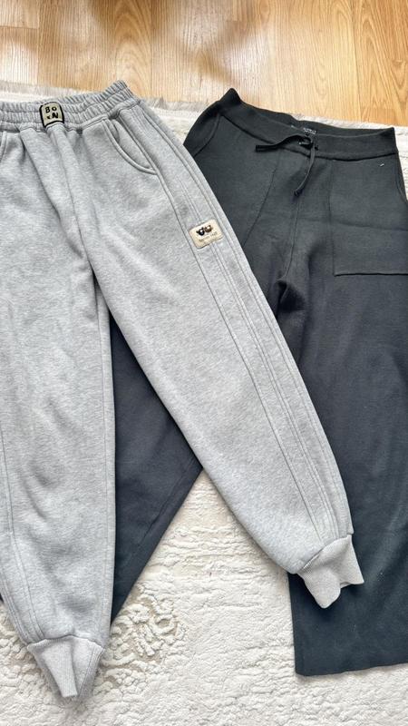 Штани теплі на дівчинку Вік: 10-11 років Розмір: 146-152 Одні - Zara оригінал, темно-зелені, не ношені, лише дитина відірвала бирку та приміряла. Цупкий трикотаж, нові. На завʼязках. Інші - утеплені джогери з манжетами знизу. Стан ідеальний, світло-сірі. Можна придбати разом, можна окремо Ціна за 2 речі: 800 грн Окремо: по 450 грн