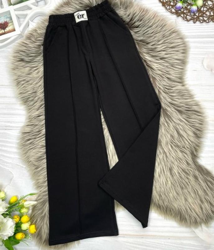 Стильные брюки палаццо со стрелкой, идеально для школы 💗 Пояс на резинке Ткань турецкая двухнить пенье. Качество очень красивое! ЗАМЕРЫ: длина брюк/шак/пояс 146 р. - 89/67/27 с. шк.Р.