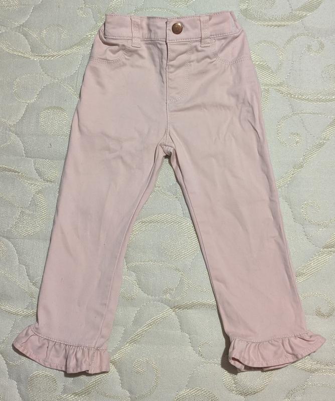 Нежно розовые качественные и очень милые штанишки для вашей красавицы от известного бренда, переносились мало,стан идеальный, ткань натуральная. Заміри на фото. Пишет на 3-4 года но маломерят, лучше на 2-3 года есть утяжка