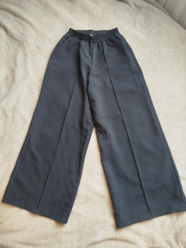 Широкие черные брюки для девочки 9-11 лет. Отличный вариант для школы. Подойдет под любой образ. Брюки с карманами, ткань тянется. Все замеры указаны на фото. Хорошее состояние. Открытка Укр-почтой или Новой