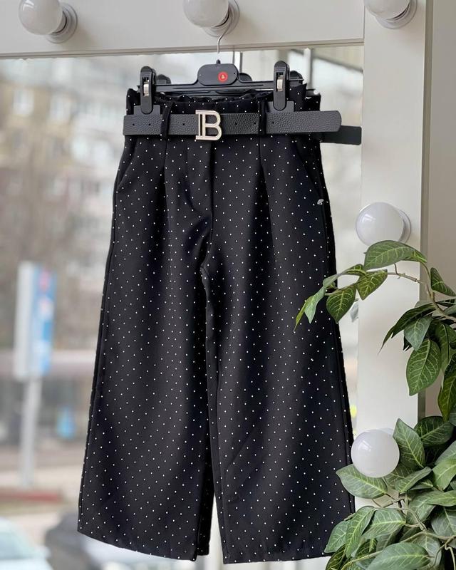 🔝Новая весенняя коллекция🪻🪻🪻🩷Невероятная красота для девочек ▪️крутежные брючки палаццо с камушками ▪️ткань костюмка, ремень в комплекте. Замер по одной ростовке, поэтому могут быть погрешности 1-3 см 🔻4- длина 60 шаг 40 бедра 36🔻6- длина 67 шаг 44 бедра 37 🔻8-длина 73 шаг 49 бедра 39 🔻10-длина 78 шаг 54 бежевое 42 🔻12-длина 84 шаг 59 бедра 42 🔻14-длина 89 шаг 64 бежевое 43