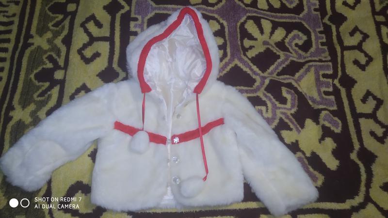 Шубка на возраст 3-4 года . На пуговицах ,с капюшоном. Состояние хорошее, без дефектов.
