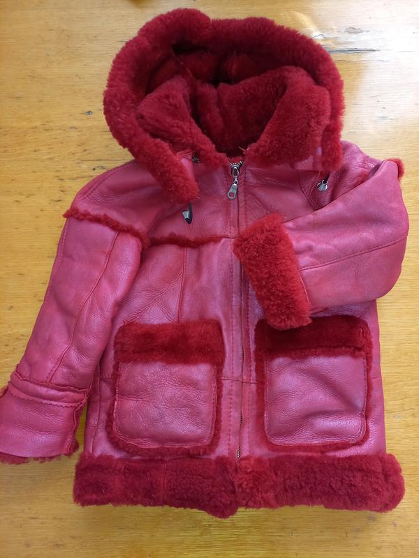 Дублянка для дівчинки 2-х років. Два накладні кармани, застібається на блискавці, капішон затягується шнурком, на блискавці. Рукава регулюються.