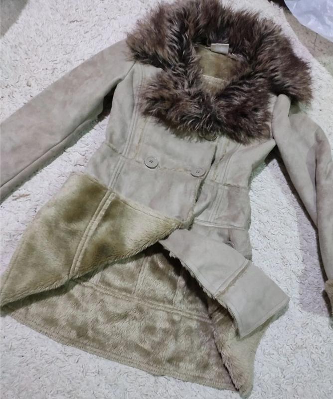 легка дублянка штучна на хутрі для дівчинки підлітка 10-13 років,ріст 152,об, 76-80,з відкладним актуальним коміром натурального кольору