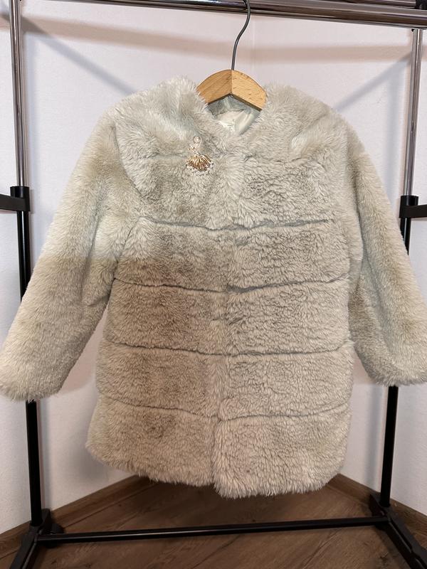Шуба из экомеха, размер на 5/6 лет, отлично подходит к платью. Стан как новый. Нежно бежевого цвета