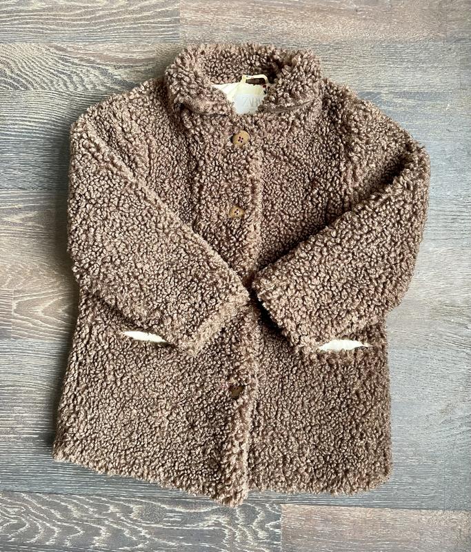 Шубка Тедди из очень приятной ткани. Подходит на весну и на раннюю осень. Стан - идеальный. Ребенок очень мало носила.