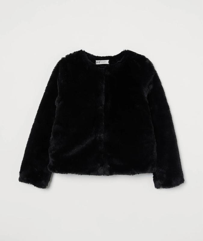 Розмір eur 134,8-9 років.(Довжина 43 см,пог 37 см,рукав від горла 50 см.) Кожушок з м'якого штучного хутра. Потайні гачки спереду, а також кишені у бічному шві. На трикотажній підкладці. Нова,без нюансів!