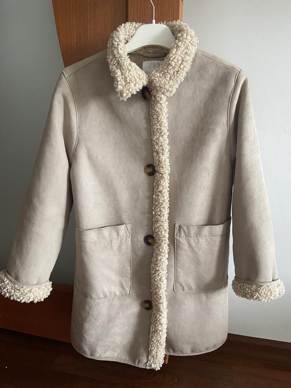 Дубленка на девочку 9-10 лет 140 см роста. Она рассчитана на осень-весну. Стан - идеальный. Замеры: плечи 36 см длина рукава 51 см ( это без подворота) Длина от шей до низа 71 см. Фирма Zara.