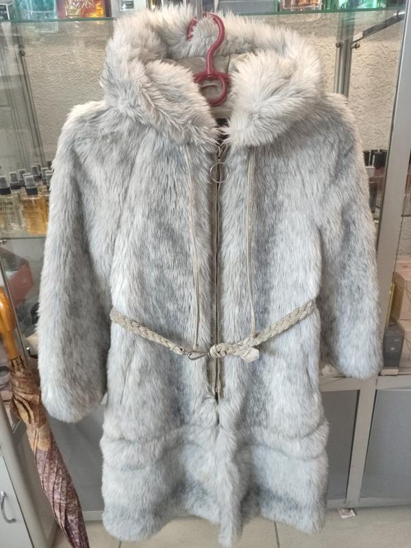 пог 38 извне длина 83 низ съёмный рукав спущенный от воротничка рукав 63 есть неброская пятнышка внизу слегка подтертая подкладка треба випрати пояс