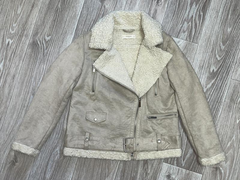 Дублёнка замшевая Внутри шерпа(барашек) Спереди карман Состояние идеальное 🏷️Mango 11-12 лет Длина 53. ПОГ 46. Рукав 53. Плечи 36