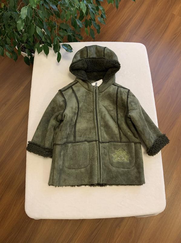 Новая деми дубленочка на рост 92см, 18-24м. Очень мягкая, присобранную цвет темнее. На бирке есть фото на девочке. Манжет на рукаве можно откачивать Замеры: рукав отвернутый 31см, длиж. 43см Состояние: новая с биркой