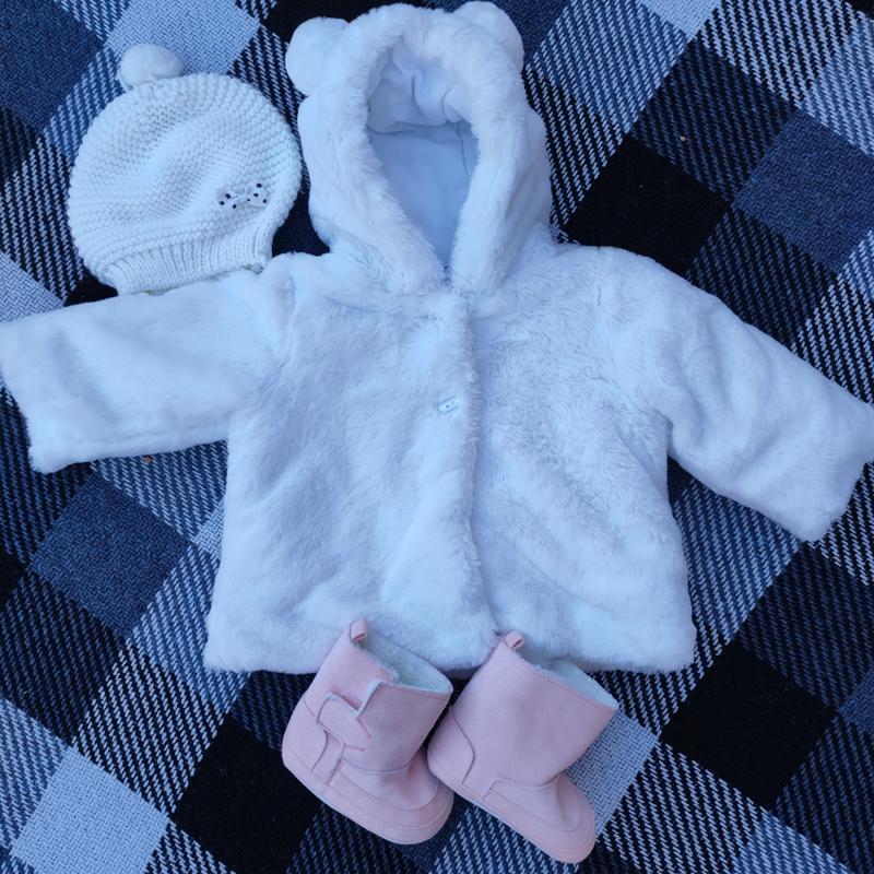 ✅ Очень классный новый набор на девочку 6-9 месяцев Шубка 68 см Капчики 20 размер + Шапочка