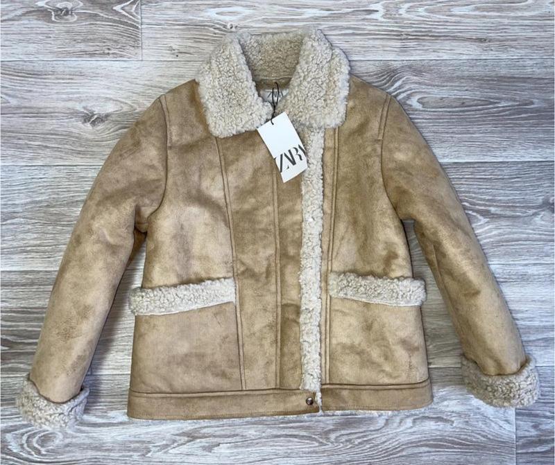 Дубленка из искусственного меха с контрастными деталями из искусственной овчины. Воротник с лацканами, длинные рукава с кнопками. Застежка-молния и кнопки. 🏷Zara 🔸9 лет Длина 50. ПОГ 42. Рукав 46. Плечи 34 🔸11-12 лет (4) Длина 53. ПОГ 44. Рукав 53. Плечи 36 🔸13-14 лет/164 р Длина 57. ПОГ 47. Рукав 57. Плечи 39