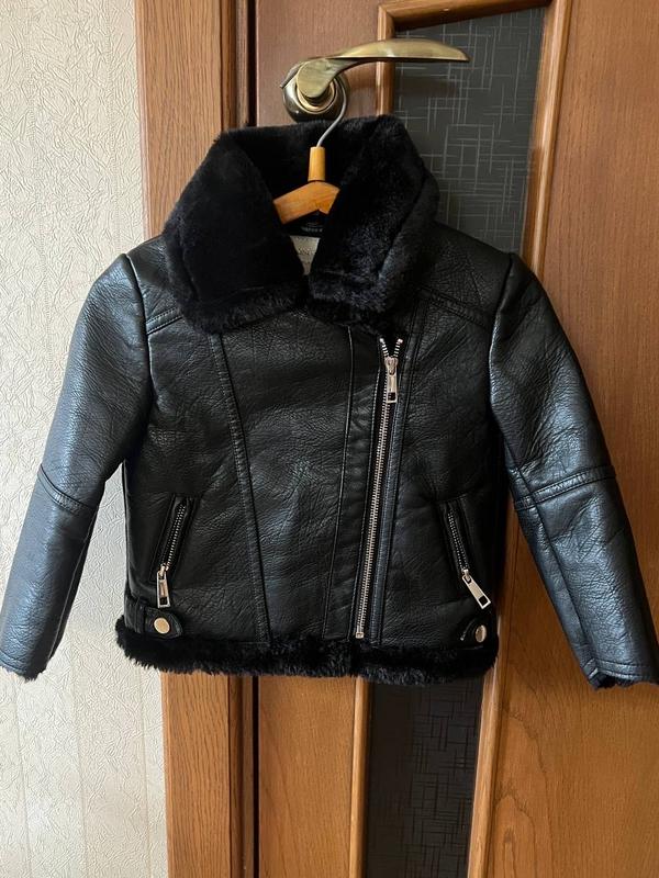 Куртка из эко кожи черного цвета ( авиаторка): длина 40, длина плеча 9, длина рукава от проймы 45, полуобхват по груди 36 см, полуохват в бедрах 38 см, в середине подбита искусственным мехом.