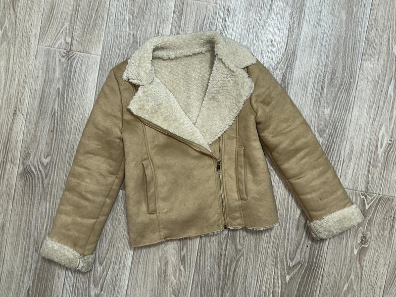 Дубленка из экозамши с плотным мехом Состояние отличнейшее 🏷️Kiabi 10 лет/138-143 Длина 47. Пог 40. Рукав 51(55 без подката)