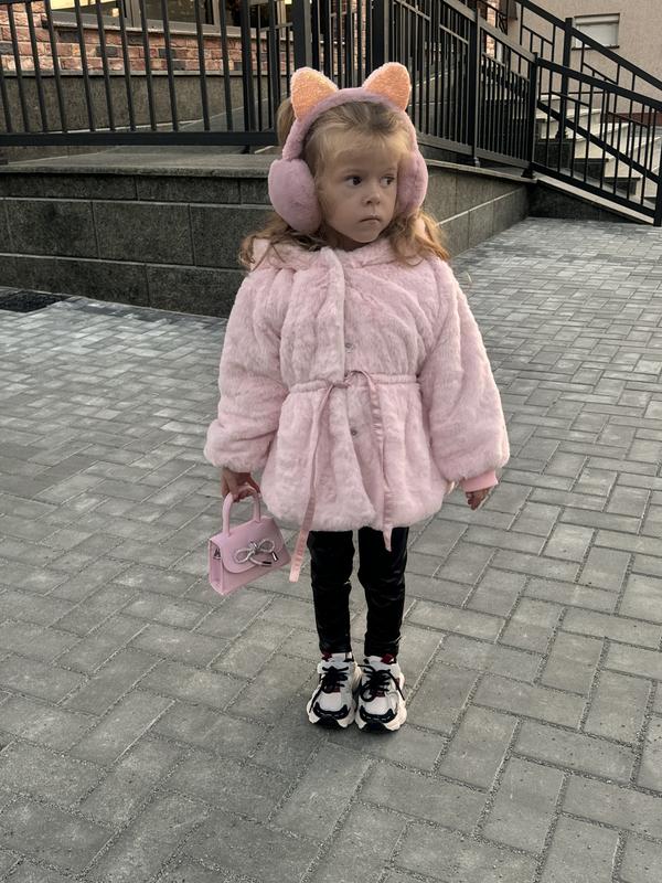 🦋 Мила шубка 🧷 Наполнитель - синтепон. Подклад - плюш. 🧷 Застежка - кнопки 🧷 Рукав от горловины. 🧷 В поясе резинка + завязки. 🧷Очень красиво в комплекте с наушниками. 🧷 Супер качество. Рекомендую !🔥 В наличии: р.90 - длин.43 см., шир.34см., рукав 38см.(2шт.) р.100 - длж.46см., шир.37см., рукав 40см.(1шт.) р.140 - длиннее.56см., шир.42см., рукав 50см.(3шт.)