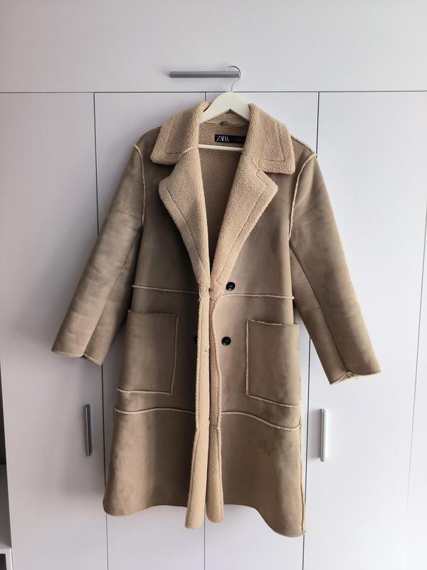 Дубленка Zara, состояние новое, наделась дважды, без каких-либо дефектов. Размер S, модель оверсайз, длина 109 см.