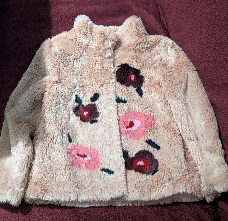 Мега стильная и тёплая шубка для девочки от известного бренда на вашу красавицу, 9-10 лет Нежно розового(нюхового) цвета с яркими цветами в идеальном состоянии.