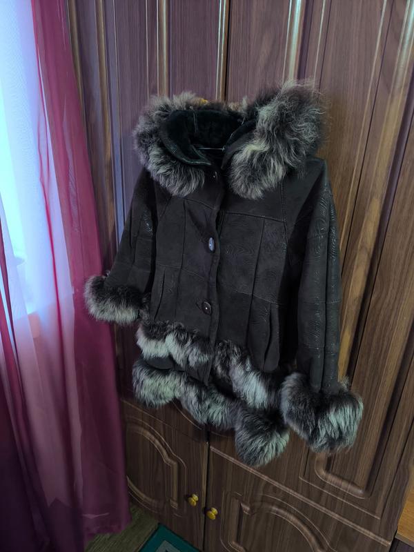Дубленка из натуральных материалов, легкая, удобная и теплая.Длина рукава от горловины 47 см, ПОГ 29 см, длина 59 см, капюшон отстегивается