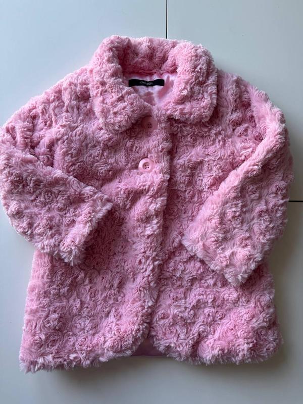 Нереальна демісезонна шубка GEORGE💕 Розмір 86/92 на вік 1,5-2 роки Атласна підкладка Карманів нема Застібається на 2 рожевих гудзики і дві кнопки Довжина 45 см , груди 32 см, рукав 35 см