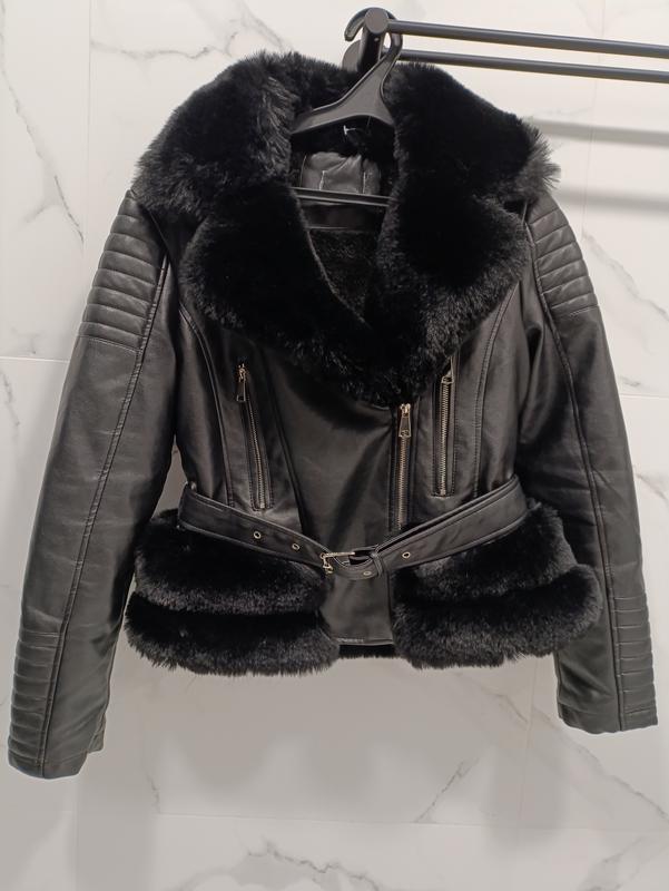 Новая тёплая дубленка с искусственным мехом, очень красивое, напоминающее натуральный.По бирцв пишет Л, но будет на С-М.