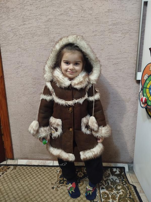 Очень классная и симпатичная теплая дублёнка Exclusive collections в очень хорошем состоянии на ребёнка пяти лет. Длина изделия по спинке от плеча 55 см, полуобхват груди 38 см, полуобхват талии 38 см, длина рукава 35 см, длина рукава от горловины 43 см. Капюшон съёмный. Модель 7143