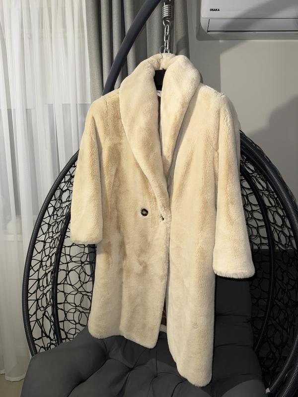 Еко-шуба від MANGO розмір С. В ідеальному стані, дуже тепла, до -15 точно. Додаткових замірів не роблю, на ріст 165 довжина-по коліно.