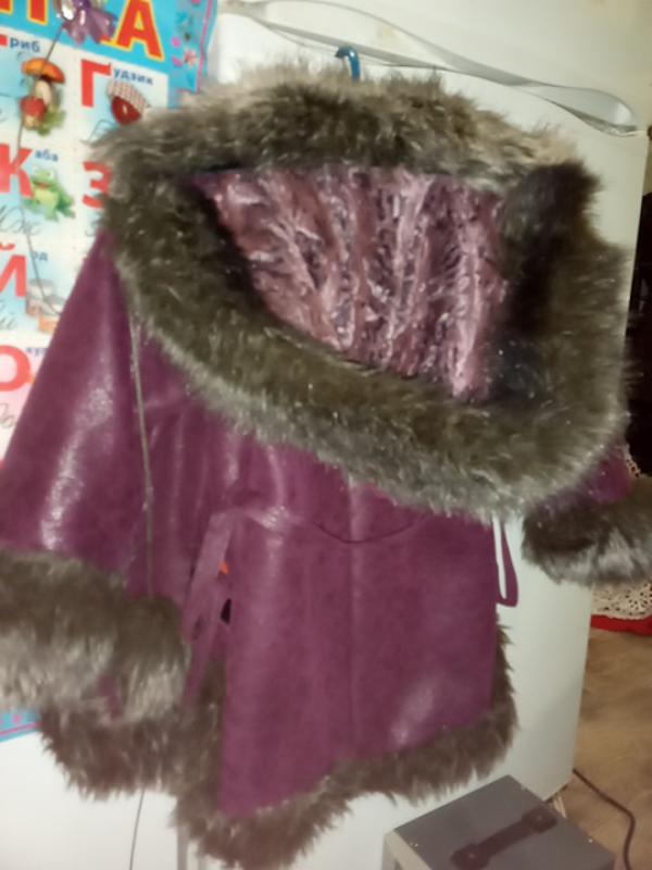 Довжина по спинці - 53, плечі - 28, рукав - 40 + манжет. Напів обхват грудей - 36, талії - 33, бедер - 36. Шарф в подарунок.