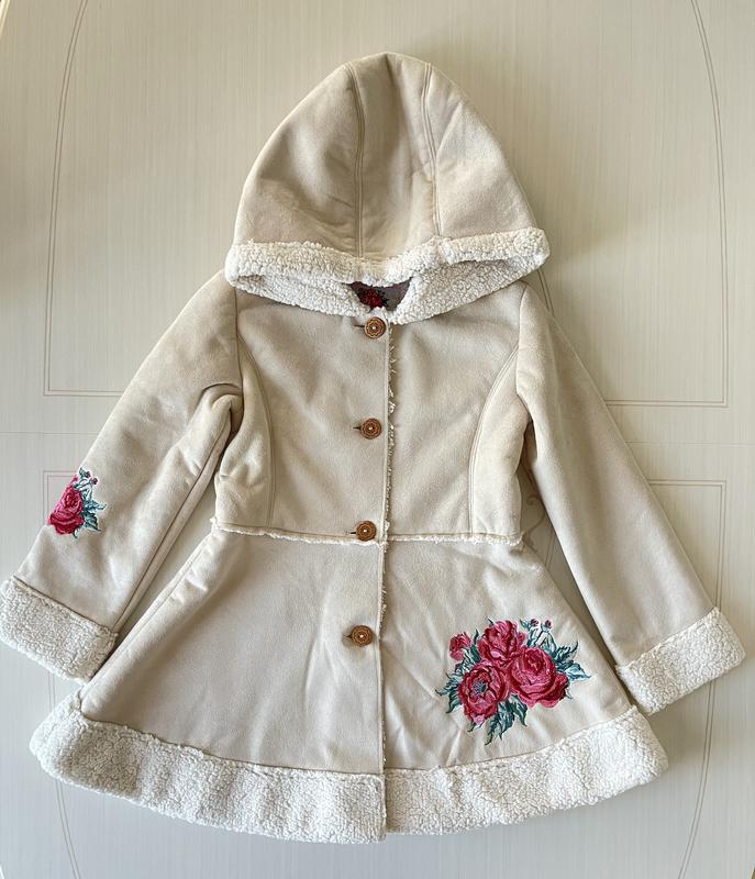Искусственная дубленка для девочки 9-10 лет, рост 140 см, длина 68 см, ширина подмышками 40 см, ширина по линии талии 37 см, по низу 73 см, плечи 35 см, рукав-50 см (можно заворачивать), рукав от подмыва 39 см
