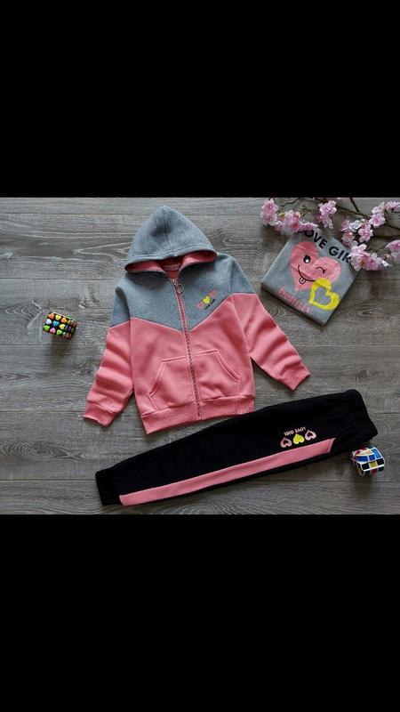 Бомбезний утеплений спортивний костюм тройка для дівчаток