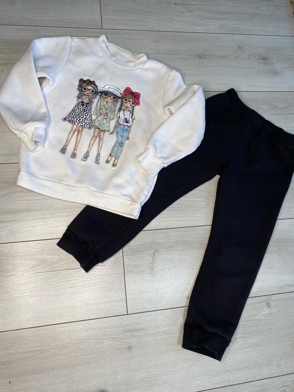 На флісі Кофта длина 47, рукав от плеча 43. Ширина в груди 37, Брюки длина 65, шаговой 47, талия 25 и тянется до 35