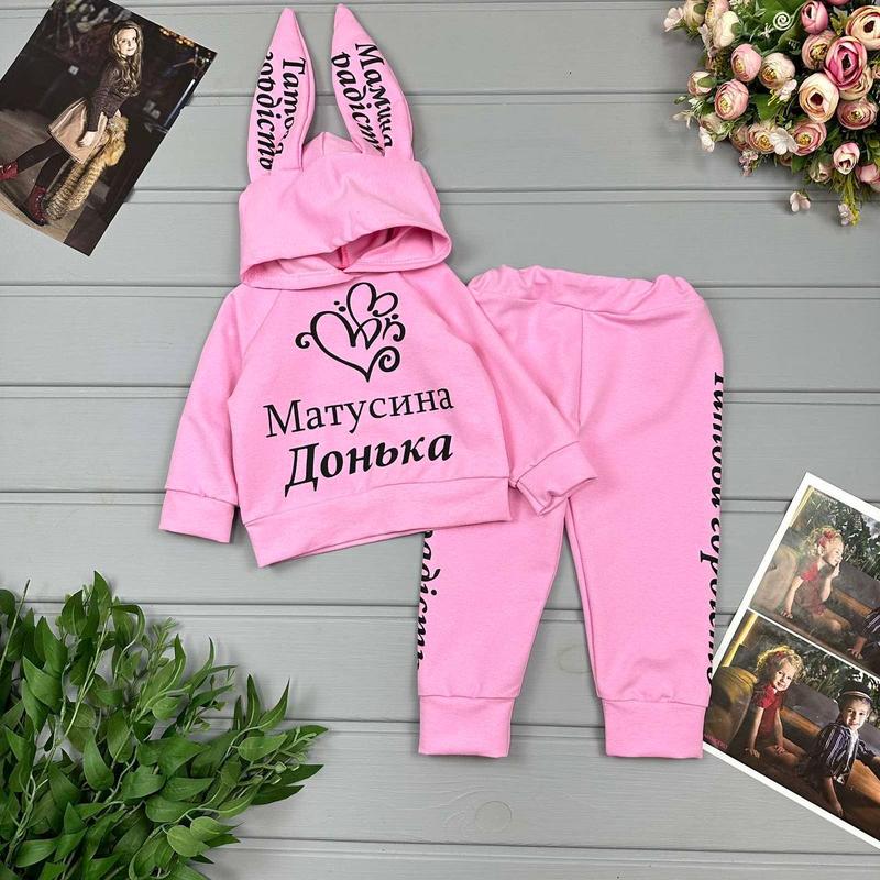 💙Костюм Матусина дочь. Тканина двунитка. Капюшон прикрашений гарними вушками. На штанах написи. Производитель Украина 📐Замеры: рукав от шеи (74-80) - длин. 30/рук.30 / штани. 44 /крок 26 (86-92) - довж. 32 /рук. 32/ штани.47 /крок 30 (98-104) - довж. 33/рук.34 / штани. 50/крок 33 (110-116) - длин. 35/рук. 33/ штани.56 /крок 39 Код 72 *Обирайте размер соответственно замерам