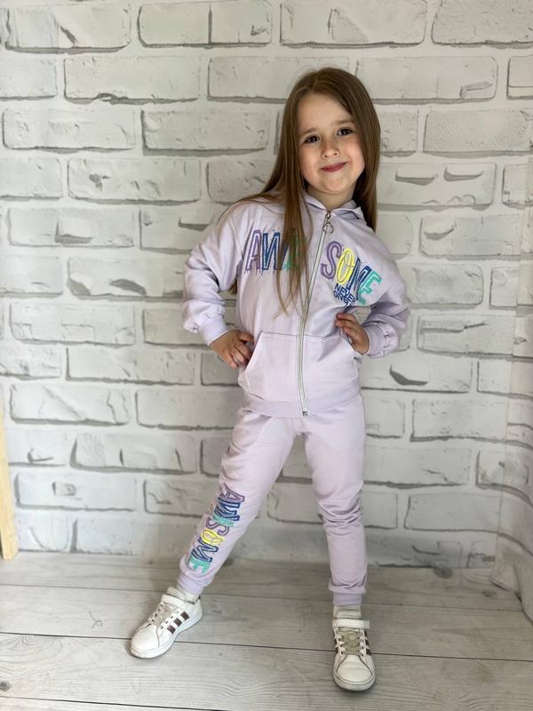 Костюмчики для девочек «AWESOME» на молнии 🧁Есть капюшончик☝🏻Ткань - качественная Турецкая двунитка🌟Маломерят на 1 размер📍 Размеры: 💓Лаванда ✅3-4рочки,буде на 98 см ✅4-5р, будет на 104 см ❌ ✅5-6р,буде на 110 см ✅6-7р,буде на 116 см❌ 💓М’ята ✅3-4рочки,буде на 98 см ❌ ✅4-5р, будет на 104 см ❌ ✅5-6р,буде на 110 см ✅6-7р,буде на 116 см❌ Замеры✨: 🌱3-4рочки - Свитшот :длина 35.5 см,рукав от шеи 38см,Пог 31см; Брюки :длина 50см,крок 30см,талия резинка(тянется!) 21 см 🌱4-5р - Свитшот :длина 38 см,рукав от шеи 41.5 см, ПОг 32.5см ;Штаны : длина 56см, крок 35.5,талия резинка(тянется) 21.5 см. 🌱5-6р - Свитшот :длина 39.5 см,рукав от шеи 44 см, ПОг 33 ;Штаны : длина 60, крок 38,талия резинка(тянется) 22.5 см. 🌱6-7р - Свитшот :длина 42 см,рукав от шеи 48 см, ПОг 35; Штаны : длина 63,шак 42,талия резинка(тянется) 23.5 см.
