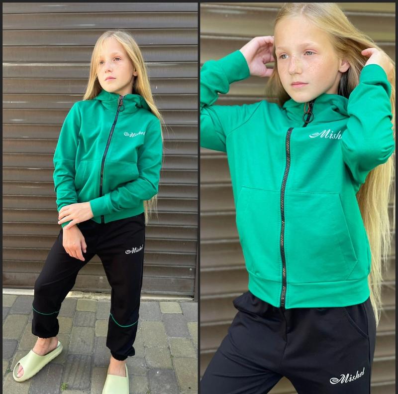 Костюмчик спорт худі+штани кофточка и штаны имеют карманы кофтинка на блискавці выполнены из качественной ткани (турецкая двунитка) 140(1 шт)-длина худи 49, пог 42,рукав от горловины 52, длина брюк 80, крок 58,пот 27, поб 40 152(1 шт)-длина худи 55, пог 45,рукав от горловины 57, длина брюк 88, крок 64,пот 30,пот 43 158(1 шт)-длина худи 56,пог 47,рукав от горловины 58, длина брюк 92, крок 68,пот 31,поб 45 Греб