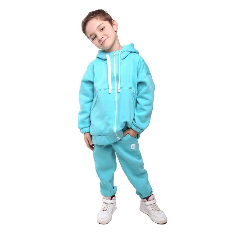 Костюм детский спортивный теплый, оверсайз толстовка на молнии, штаны, голубой для девочк...