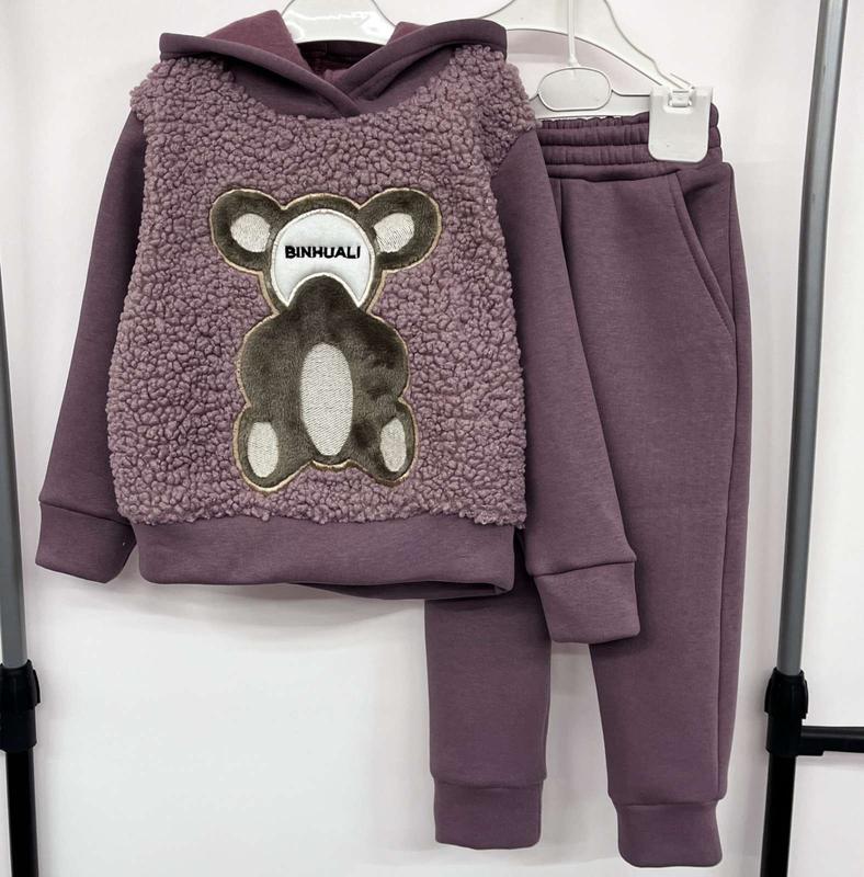Костюм двойка детский подростковый теплый, худи тедди, штаны, сливовый