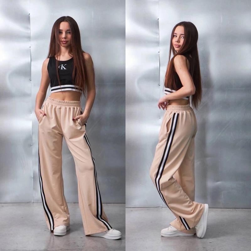 Новинка сезону Суперовый комплект топ и палка в стильном дизайне крутой лампас с надписью 3Д пояс брюк под резинку топ с накатом под резинку ткань турецкая двухнить пенье не кашлатиться рекомендую! рост/длин.топа/пог/длин.штанов/крок/пот/поб похибка+-2см 140/27/33/92/66/28/47 146/29/34/95/70/28/49