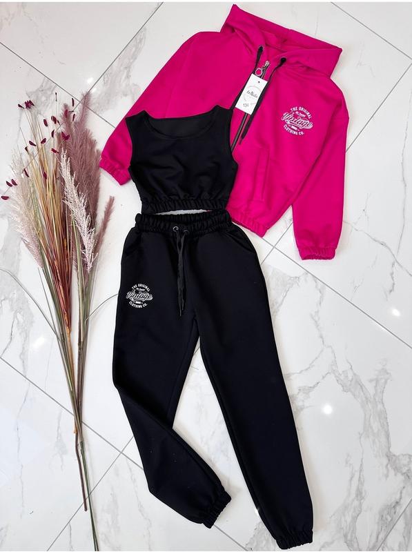 Спортивный костюм тройка брюки кофта топ, подростковые спортивные костюмы 3-ки из турецкой...