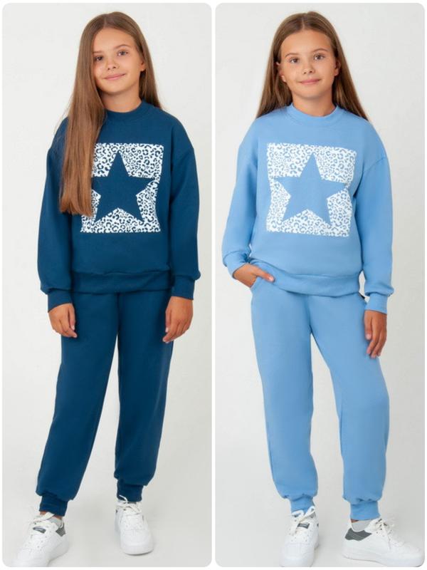 Через шкаф отправки нет ❗ Цена зависит от размера ⬇️ р128-500грн р134-550грн р140-600грн р146-640грн р152-660грн р158-680грн р164-700грн р170-720грн Базовый спортивный костюм для девчак-подростков из двухниточного футера. Модель состоит из свитшота свободного покроя с длинными рукавами на манжетах, воротником-стойкой из эластичного материала, на манжетах по низу изделия, а также брюк с карманами, притачным поясом с широкой эластичной тесьмой и шнурком, низ изделия с манжетами. Костюм подходит для повседневной носки, занятий спортом, активного отдыха. Полотно: двухниточный футер Состав: 80% хлопок, 17% полиэстер, 3% эластан Рекомендации по уходу: стирать при температуре не более 30°C. Рисунок гладить только с изнаночной стороны