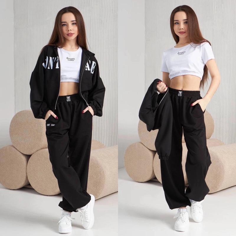 в наличии 👍❤️😘 Мега крута новинка Костюм тройка для стильных красавиц ткань турецкая двухнить отличного качества кофта застегивается на молнию, манжеты и пояс на резинке штаны на резинке,е карманы рекомендую! замеры: длина кофты/пог/рукав от горловины/длина топа/пог/длина брюк/шаг/пояс 140-43/53/57/22/33/90/66/27