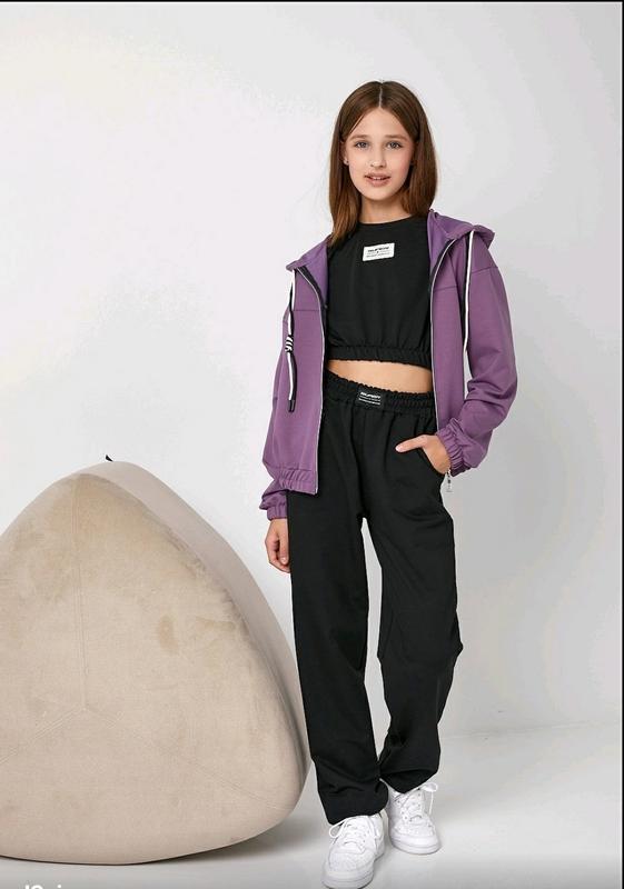 Шикарный костюм 3-х к качество бомбеза ткань двуниточка очень хорошего качества замеры-длина кофты\пог\рукав от горловины\длина топа\пог\длина брюк\шап\пояс 134-47/48/58/28/33/81/60/24 140-47/49/60/29/34/86/63/26 146-48/51/64/29/35/91/69/27 152-51/52/65/31/40/96/72/29 158-53/53/69/33/40/102/76/29