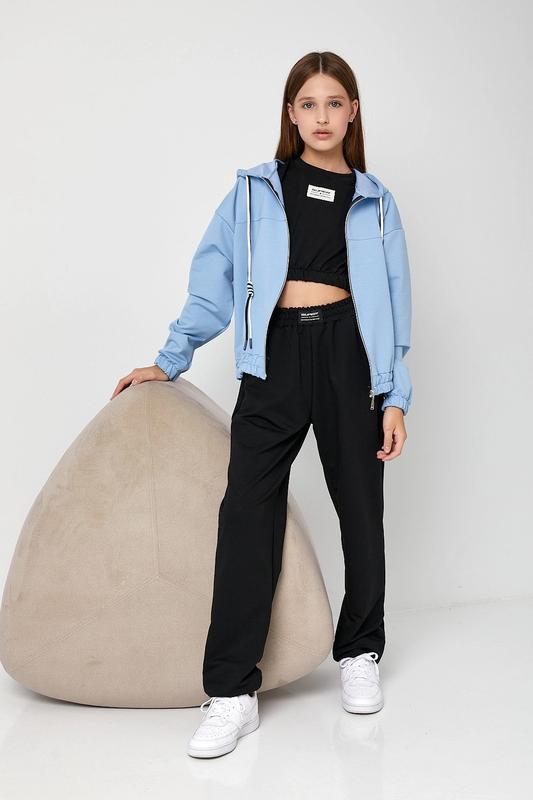 Шикарный костюм 3-х к качество бомбеза ткань двуниточка очень хорошего качества замеры-длина кофты\пог\рукав от горловины\длина топа\пог\длина брюк\шап\пояс 134-47/48/58/28/33/81/60/24 140-47/49/60/29/34/86/63/26 146-48/51/64/29/35/91/69/27 152-51/52/65/31/40/96/72/29 158-53/53/69/33/40/102/76/29