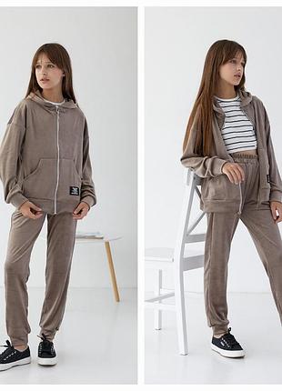 Красивый и теплый костюм для девочки ткань королевский велюр качество очень красивое замеры-длина кофты\пог\рукав от горловины\длина брюк\шак\пояс 134-49\47\53\78\59\25 140-52\49\58\81\61\27 146-54\50\62\87\65\27 152-56\52\65\93\70\29 158-58\54\64\98\74\30