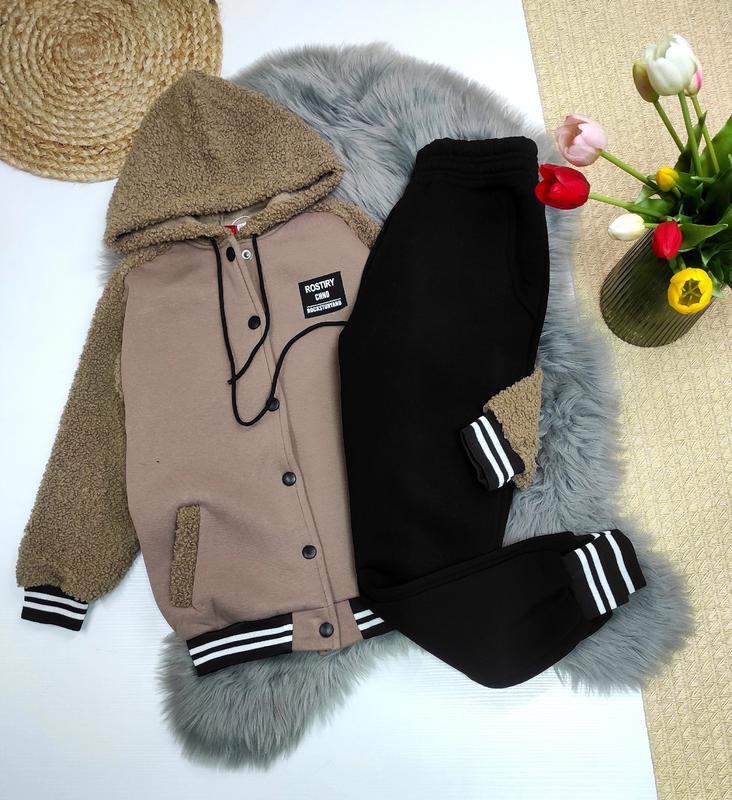 В наличии 🧡 НОВИНКА Теплый костюм для модницы Бомпер+штани Ткань трехнитка на флисе, рукав букле Есть карманы Бомпер закрывается на кнопки УДОБНАЯ КАЧЕСТВО замеры:бомпер долж/рукав от горловины/пог/брюки длин/шаг/пояс 140р-57/57/41/88/62/26 146р-59/61/43/91/66/27 164р-67/67/51/99/73/30 +-2 см
