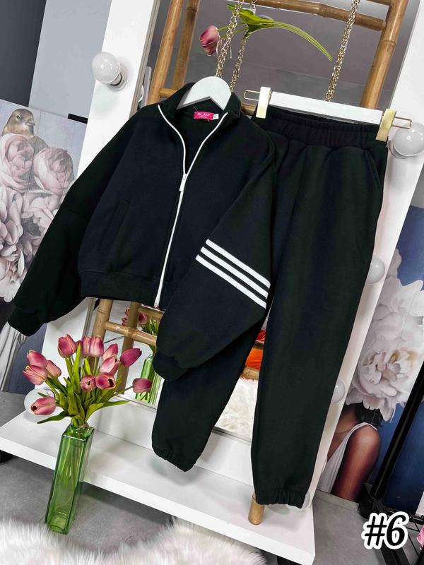 Хитовая коллекция 2024-2025❤️ Стильный костюм для девочки Ткань флис, Оверсайз-кофточка с замочком, есть врезные кармашки, украшена полосками в стиле бренда штанишки с утяжкой по низу, теплый и мега удобный, КАЧЕСТВО ЧУДОВА!! РЕКОМЕНДУЮ!!! ЧЕРНЫЙ 140-1шт 146-1шт 152-1шт 164-2шт Длина /рукав / пог-длина / крок /пояс 140-45/65/52-85/61/28 146-47/67/55-87/63/29 152-50/69/58-88/65/30 158-52/72/60-91/68/31 164-55/75/61-94/71/32 +-2см