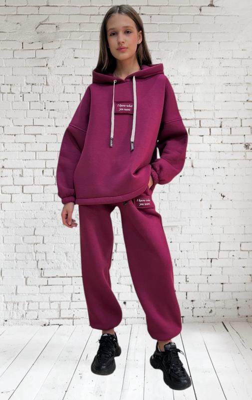 Теплый и стильный костюм Крой худи оверсайз худі низ на кулісці штани джогери В поясе и снизу на резинке есть два кармана Ткань турецкая трехнить на флисе Не кошлатиться КАЧЕСТВО ЧУДОВА!! РЕКОМЕНДУЮ!!! 134-1шт 146-1шт 158-1шт Длина худи/пог/рукав от горловины/длина брюк/шак/пот(резинка)/п**********/87/62/31/42 140-56/57/62/90/64/31/45 146-58/59/66/91/66/32/47 152-60/60/68/94/68/32/49 158-63/62/70/96/70/33/51